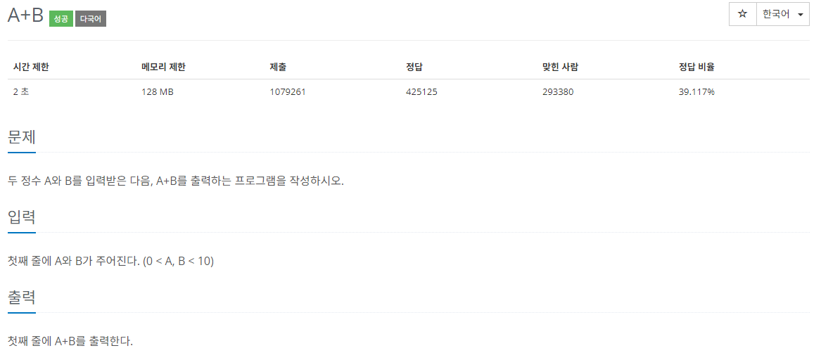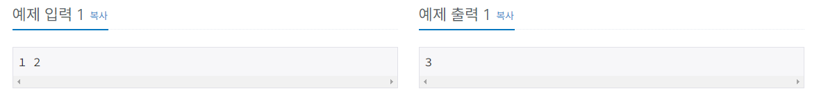 "두 정수 A,를 입력받고 A와 B를 더한 값을 출력해라!"