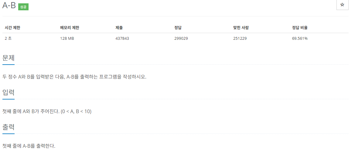 "두 정수 A와 B를 입력받고 A에 B를 뺀 값을 출력해라!"