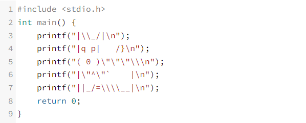 printf("|q p| /}\n");