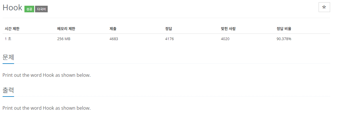 아래와 같이 Hook이라는 단어를 인쇄해 보세요.