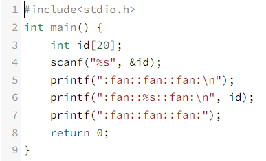 printf(":fan::%s::fan:\n", id);