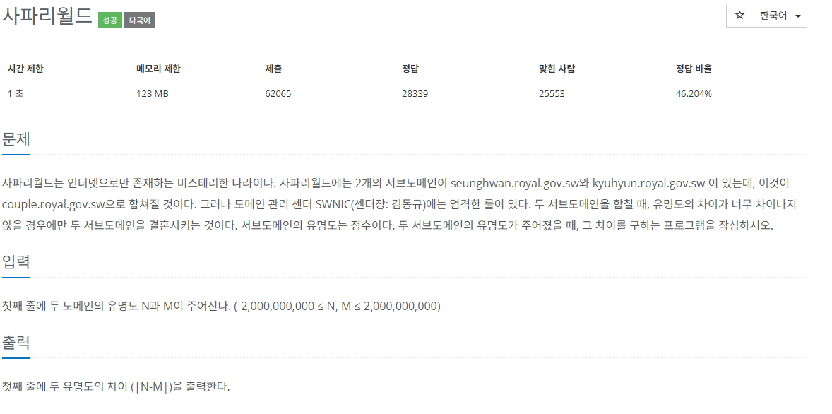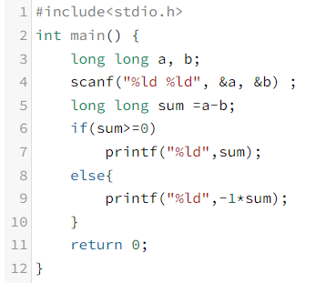 두 수의 차가 최대 4000000000으로 long long 자료형과 %ld의 활용 잘 알고 있고,