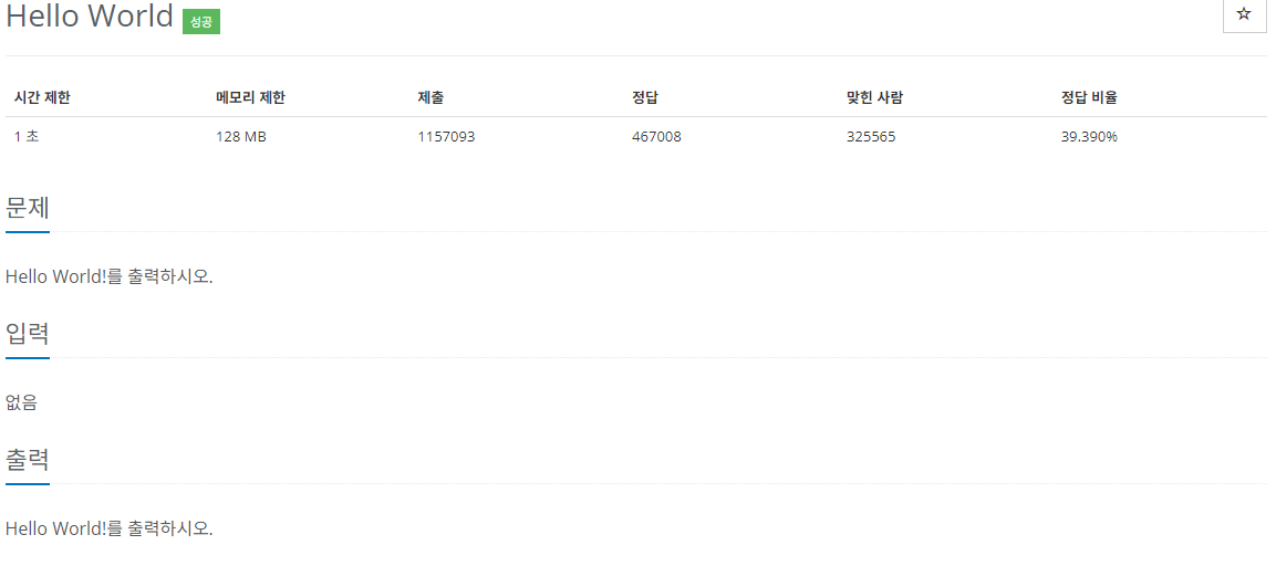 'Hello World!' 출력만 똑같이 하면되니 printf함수만 알고 있어도 쉽게 해결할 수 있는 문제다.