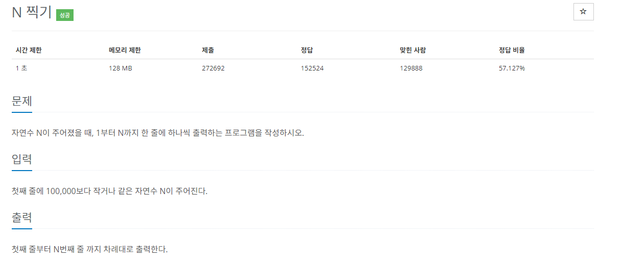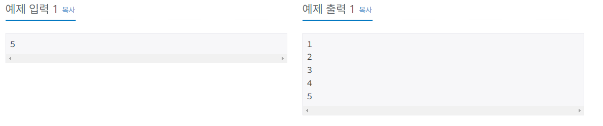 "숫자 N이 주어졌을때 1부터 N까지 출력해라!"