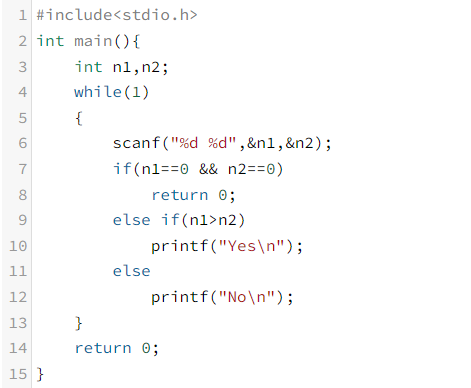 크다면 한줄에 Yes 아니면 No을 출력하라!"
