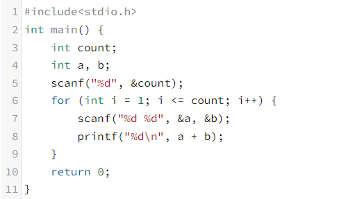 각 테스트 케이스 출력에 대해 해당 정수의 합계를 출력합니다.