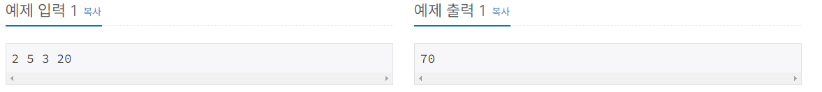 "입력받은 첫번째 수와 두번째 수의 곱과 세번째 수와 네번째 수의 곱의 합을 출력하라!"