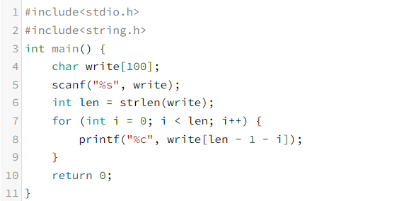 문자를 하나 하나 거꾸로 반복해서 출력을 해야하니 배열과 문자열의 길이를 알 수 있는 strlen함수,