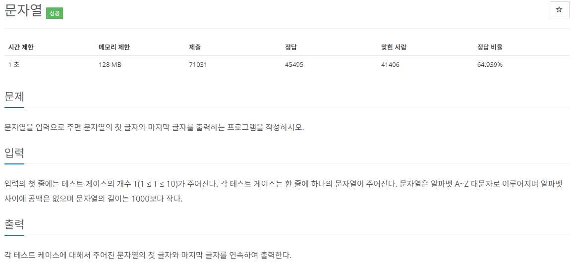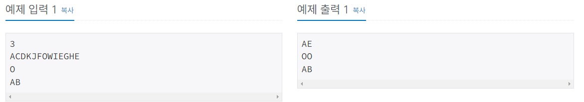 "몇번 반복할지 수를 입력받고 그 수만큼 입력받은 문자열의 양끝을 각줄에 출력하라!"