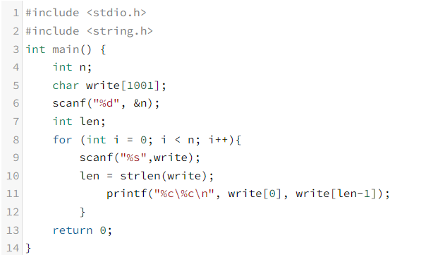printf("%c\%c\n", write[0], write[len-1]);