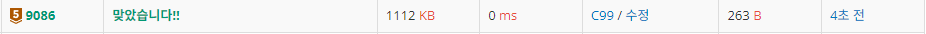 | [백준-8871]: Zadanie próbne 2(C99)-브론즈5 (0) | 2024.04.27 |